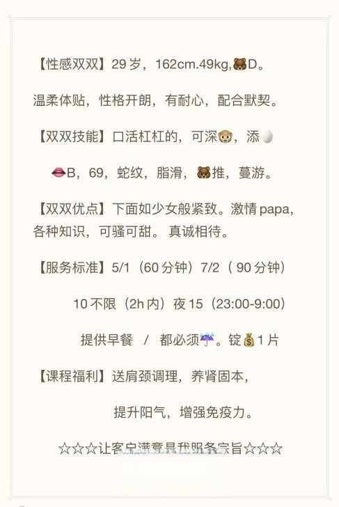 、保证金、照片验证、视频验证等任何提前付费的行为;以及引导下载APP,千万不要上当。同时也请注意仙人跳,在寻欢前不要露富和带过于贵重随身物品。本站只提供整合信息平台并不对寻欢经历负责,被骗一概与本站无关。信息真假请自行甄别,碰到有问题的信息,请及时举报给我们删除信息。